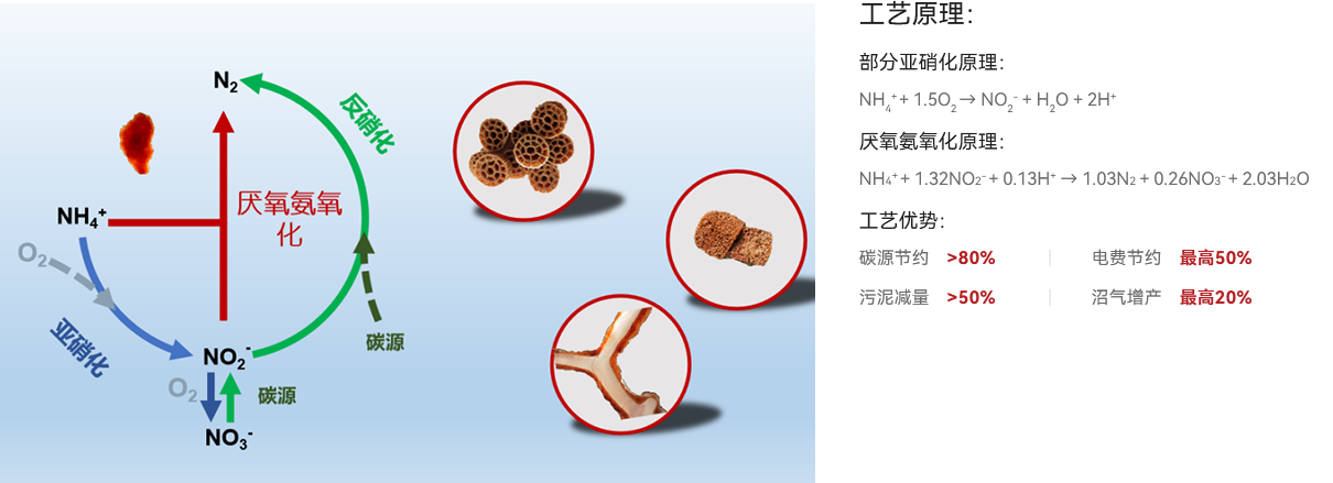 Flocculent and granule mixture sludge Anammox process 即絮状颗粒混合污泥厌氧氨氧化工艺,是低C/N比含氨废水生物脱氮处理的升级换代技术。