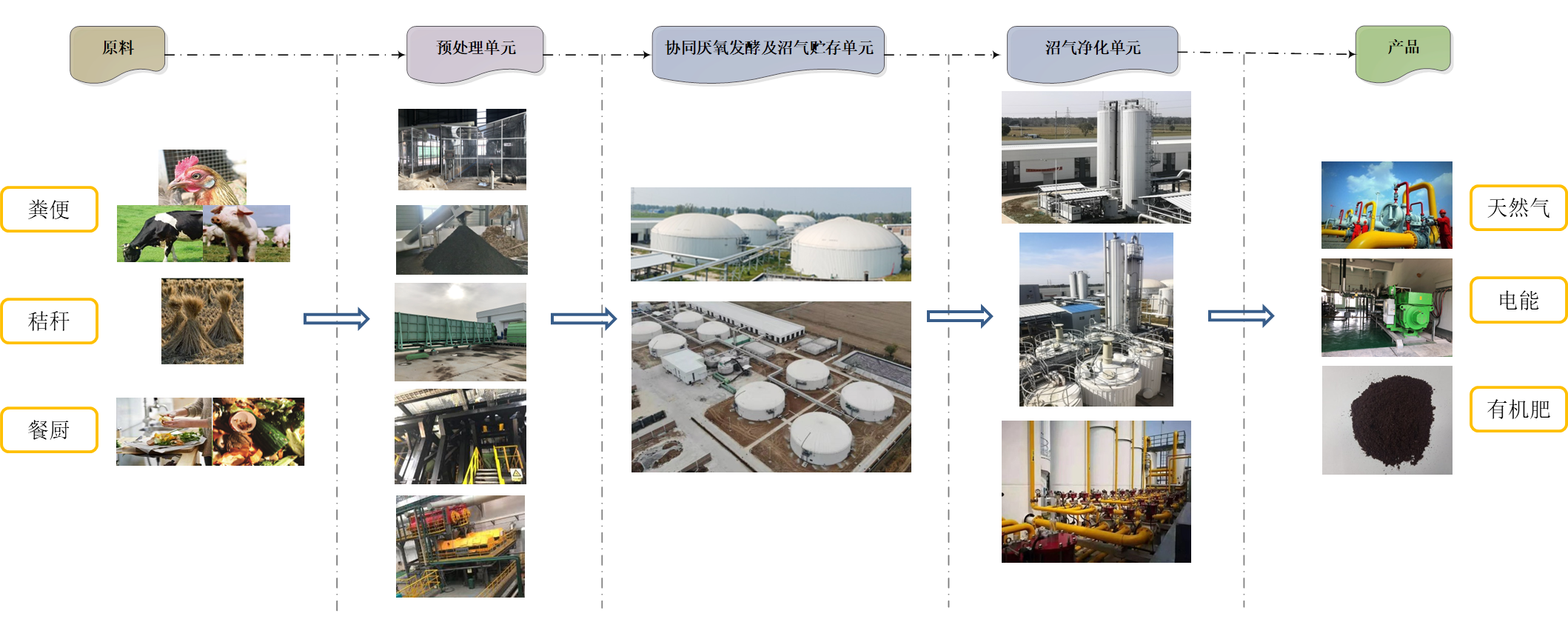 徐州国新项目结合了沛县畜牧业及农业发展和环境保护的实际要求,处理原料包括畜禽粪便、环卫粪便、秸秆及餐厨垃圾,实现了多元原料协同和城乡有机废弃物统筹资源化处理。