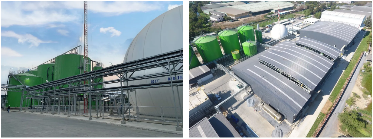 泰国项目设计有4套4000m³的高效厌氧反应器,2套1000m³/h生物脱硫系统。均由ag尊龙链接控股子公司杭州能源环境工程有限公司设计供货及指导安装。高效厌氧反应器具有高负荷、低停留时间、高效率、产气率高的特点,且沼渣量比传统的CSTR反应器更少。生物脱硫技术具有低运行成本优势。两项技术的组合实现了低成本高效率的有机物资源化利用。